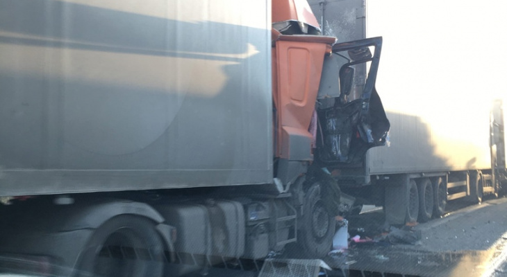 Три фуры столкнулись «паровозиком» на нижегородской трассе