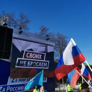 Сегодня в 14.00 на площади Минина состоялся концерт, приуроченный к восьмой годовщине присоединения Крыма и Севастополя. Подобные мероприятия в этом году имеют особенно массовый характер и проводятся по всей стране. Жители Нижнего Новгорода пришли на концерт с цветами и российскими флагами.
