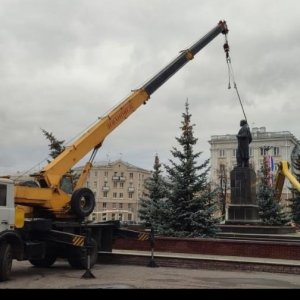 В Сарове накренился медный Ленин, приехал кран