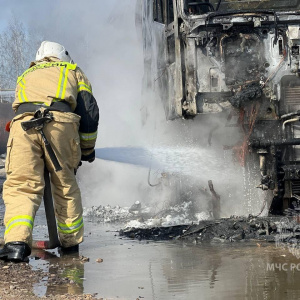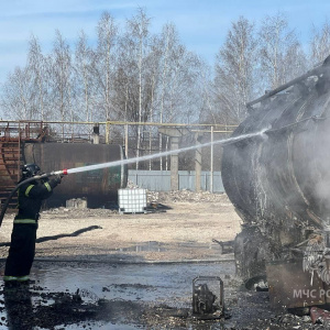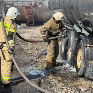 Возгорание по адресу улица Лермонтова, 18ш случилось утром 13 апреля. Загорелись две автоцистерны и грузовой автомобиль.