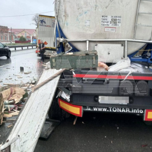 Инцидент произошел 3 мая в районе села Мячково. Там на дороге грузовик с боеприпасами задел цистерну с топливом. По предварительным данным, водитель фуры не справился с управлением и задел проезжавший рядом грузовик. От удара из фуры выспались боеприпасы прямо на дорогу.