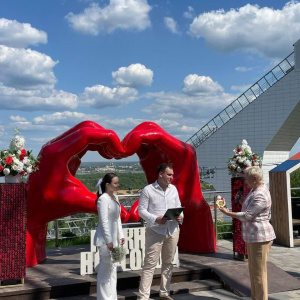 Такая церемония в городе прошла впервые. Матвей Моисеев и Анастасия Мягкова после регистрации поднялись в вип-кабине "Колеса-НиНо" не высоту 120 метров, где их ждал праздничный фуршет и фотосессия.