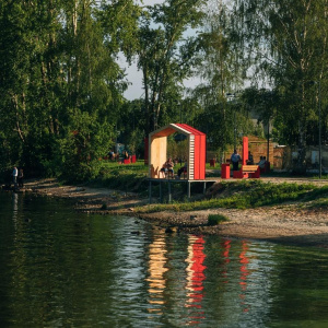 На набережной теперь можно отдохнуть под навесами на деревянных мостках с видом на Горьковское море. Также там появилось волейбольное поле и деревянные лежаки.