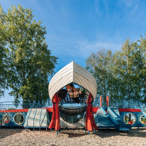 На Чкаловской пристани появился многофункциональный павильон с амфитеатром и видовой площадкой, баскетбольное поле и спортивные тренажеры, игровая площадка, стилизованная под гибрид «Метеора» и самолета АНТ-25. А также там поставили арт-объекты, отсылающие к самолетам, на которых летал Валерий Чкалов.