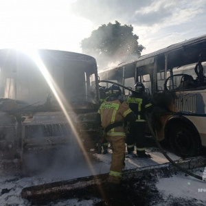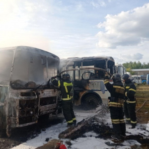 Сообщение о пожаре поступило 27 июня около шести часов вечера. На улице Амбулаторной в городе Выкса горели пять автобусов и газель. Тушили огонь 18 пожарных и пять единиц техники.