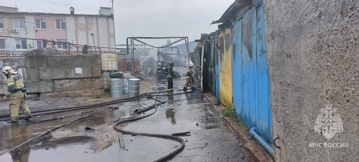 В 14:09 была объявлена ликвидация последствий пожара. В результате пожара огнем уничтожены гаражи, фура на общей площади 800 кв.м.