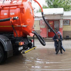 Откачка воды с улиц идет круглосуточно. С главных магистралей техника постепенно переходит во дворы. Задействована вся имеющаяся водооткачивающая техника, включая ручные мотопомпы.