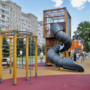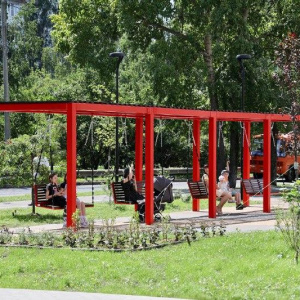 На проспекте Кораблестроителей, 22-36, установили игровые и спортивные элементы для малышей и детей постарше, парковые качели, лавочки, светильники, высадили зелень. Проложили дорожки так, чтобы было удобно приходить из соседних домов, магазинов и с остановок.