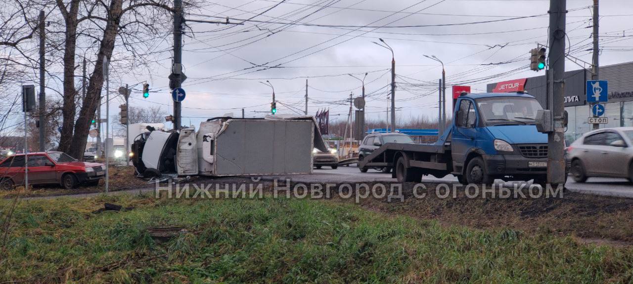 Опрокинувшаяся ГАЗель перекрыла движение на одной из улиц Нижнего Новгорода