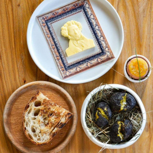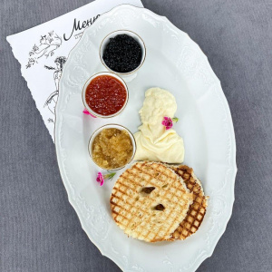 - сет из трех видов икры - кеты, щуки и палтуса, с копченым маслом и сливочной бриошью. Стоимость - 799 рублей.