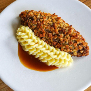- сет из 6 подач, куда вошли печеный картофель в золе с щучьей икрой, свекольный блин, томленая осетрина, пожарская котлета, варенец с супом из малины и яблочный пирог;