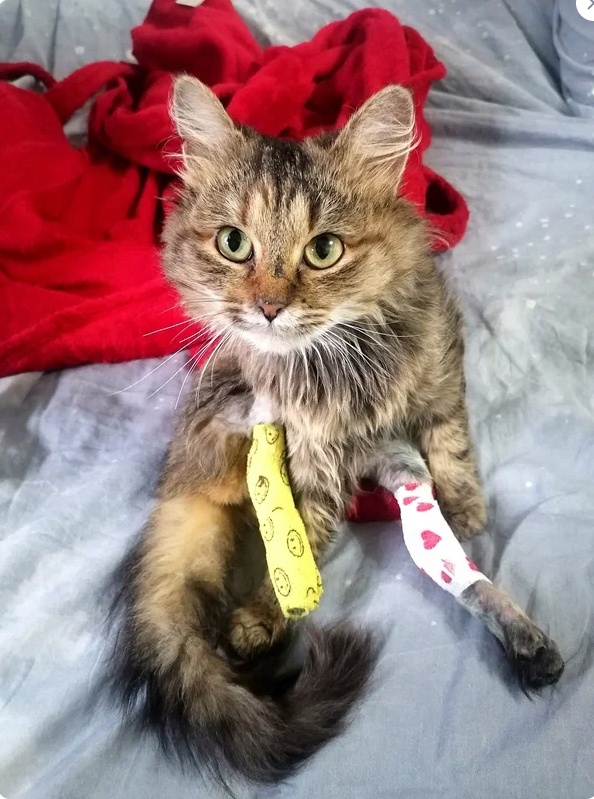 В ходе осмотра ветеринары выяснили, что у кошки были ранены задние лапки. Она была в тяжелом состоянии, истощена. Кошке сделали рентген и выяснили, что в нее стреляли. Ветеринары ее прооперировали, назначили лечение.