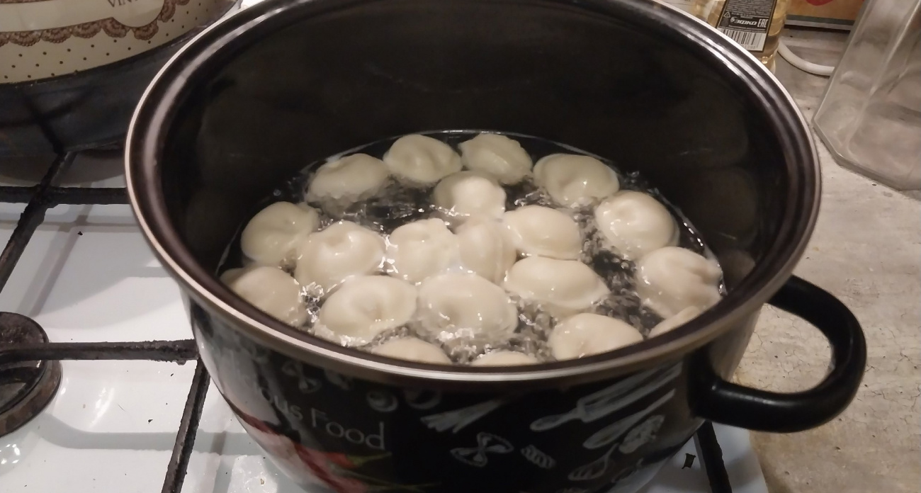 Не кидайте пельмени в кипяток! Оптимальная температура воды — около 50–60 градусов (когда на дне появляются пузырьки). После добавления пельменей доведите воду до кипения.