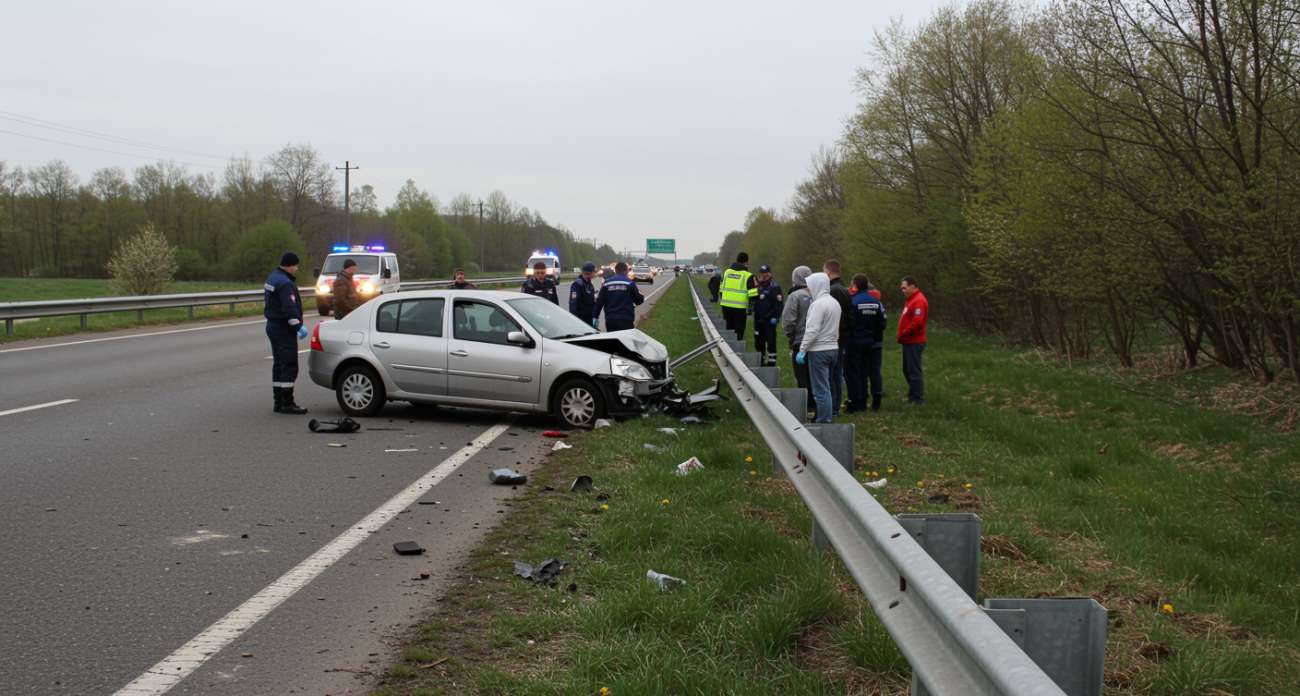 Вследствие ухудшения самочувствия водитель съехал с дороги. Его автомобиль оказался на обочине, где врезался в металлический отбойник. Удар пришелся на колесоотбойный груз.