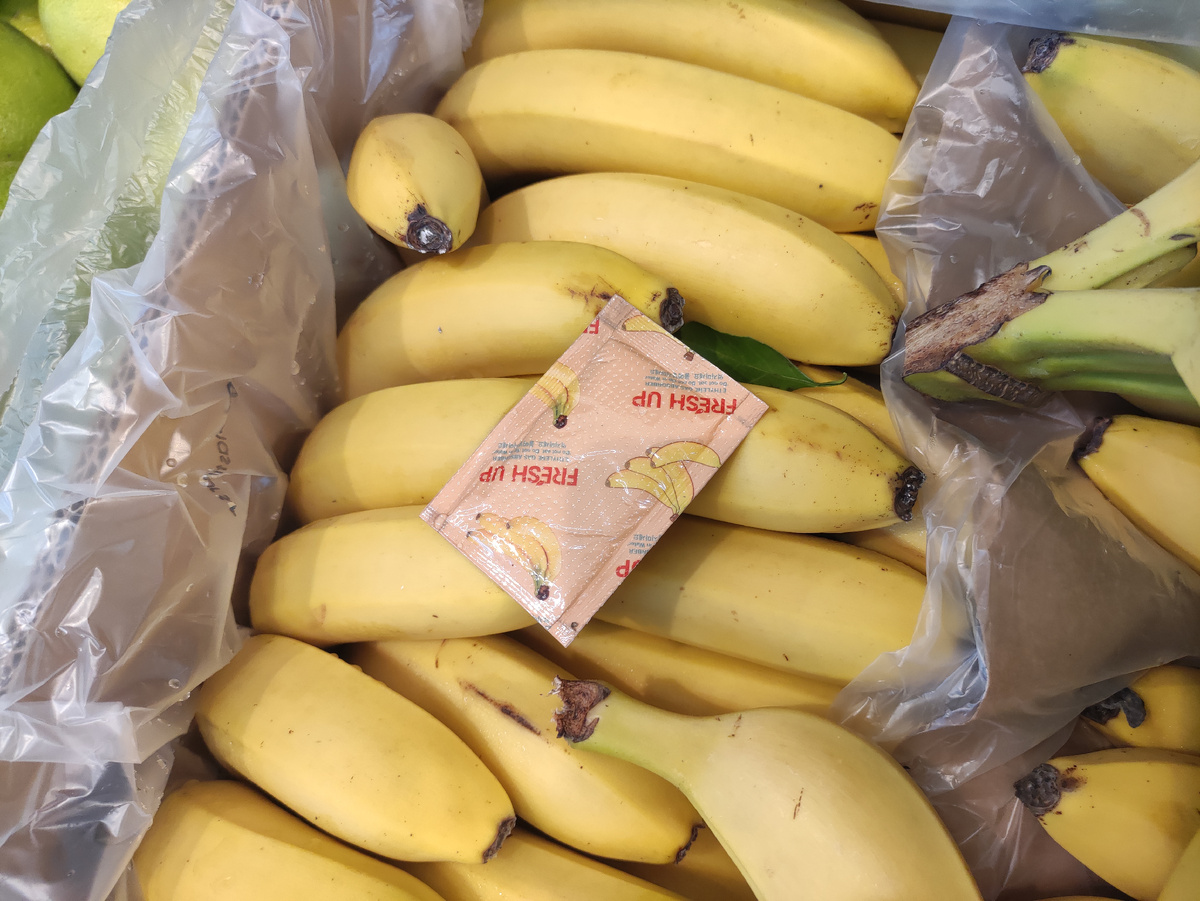 Для борьбы с преждевременным созреванием бананов в каждой коробке лежит специальный пакетик — фрешер. Он впитывает выделяемый бананами этилен и алкоголь, замедляя их созревание. В магазине, когда коробку открывают, фрешер обычно убирают и покупатели редко обращают на него внимание, хотя он может использоваться повторно. Просто положите пакетик на солнце, чтобы он «освободился» от впитанных газов, и он снова будет эффективен.