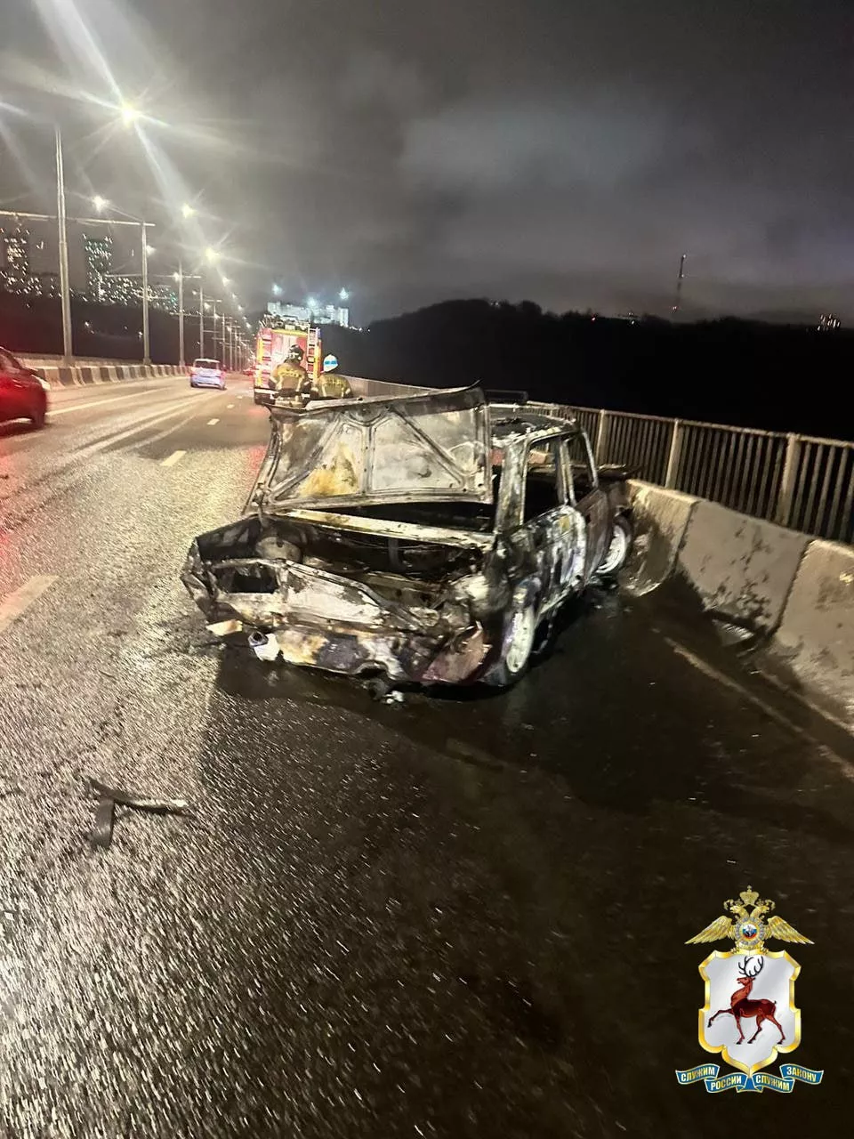Две легковушки устроили пожар на мосту в Нижнем Новгороде