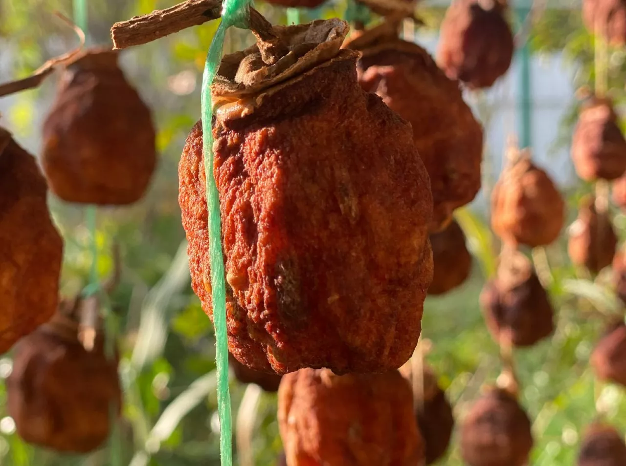 Отдельная история – сушёная хурма, которую многие туристы считают главным местным сюрпризом. Плоды снимают ещё в октябре, не дожидаясь полной спелости, обязательно с небольшим хвостиком‑веточкой. Хурму очищают от кожуры, нанизывают на верёвки и вывешивают на улице в тени, где она проветривается, но не пересыхает от прямого солнца. Такой «занавес» из фруктов висит 1–2 месяца, в зависимости от погоды, а на выходе получается плотное, сладкое лакомство, которое многие называют вкуснее свежего плода. Эти связки сушёной хурмы охотно покупают в качестве съедобного сувенира.