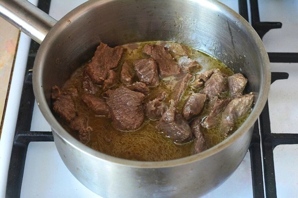 Вторая распространённая ошибка — излишняя нарезка. Желание сразу порезать говядину на маленькие кубики делает только хуже: площадь контакта с водой растёт, сок уходит быстрее, а сами кусочки становятся сухими и безвкусными. Для супов и бульонов рациональнее варить крупный кусок, а уже потом нарезать готовое мясо по нужному размеру. Внутри большого куска температура растёт медленнее, волокна не перетягиваются так резко, и структура выходит более нежной.