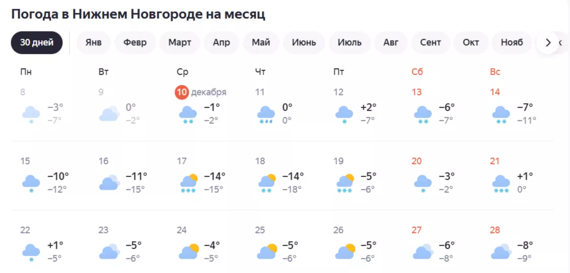 С 13 по 20 декабря в Нижнем Новгороде ожидается заметное изменение погодных условий. Зима, наконец, вступит в свои права. По данным Гидрометцентра России и сервиса "Яндекс Погода", уже к выходным температурный фон начнет стремительно снижаться.