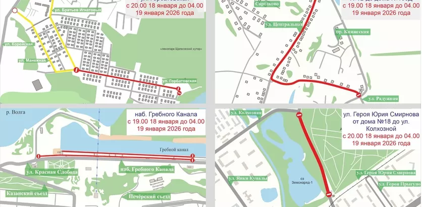Кроме того, с 19:00 18 января до 04:00 19 января движение закроют на набережной Гребного канала и в деревне Сартаково - от дома № 1Б до № 166Д по улице Центральной.