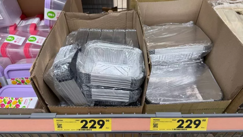 Алюминиевые формы с крышкой — сразу два удачных варианта для тех, кто часто запекает. За 229 рублей продаются формы 880 мл (10 штук в упаковке) и отдельно — 490 мл (20 штук за те же 229). В больших удобно делать мясо, рыбу и овощи «на компанию», а маленькие хороши для порционных ужинов и гарниров. Крышка выручает, когда нужно довезти блюдо на дачу или просто убрать в холодильник без запахов и подсыхания. Плюс такие формы спасают от вечного мытья противней — после готовки остаётся только утилизировать.