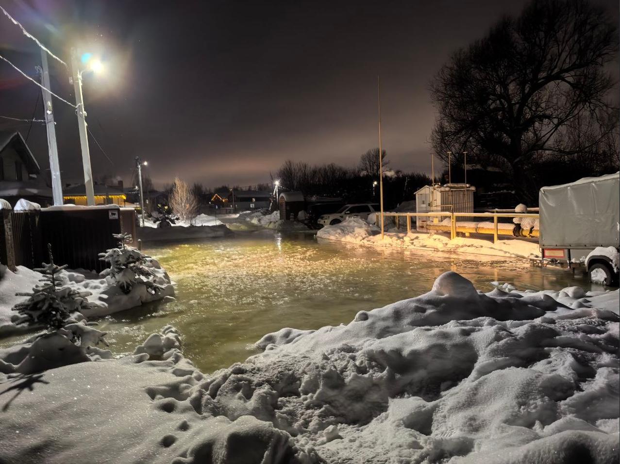 Прорыв 60-сантиметрового водовода затопил дороги в деревне Новопокровское под Нижним Новгородом