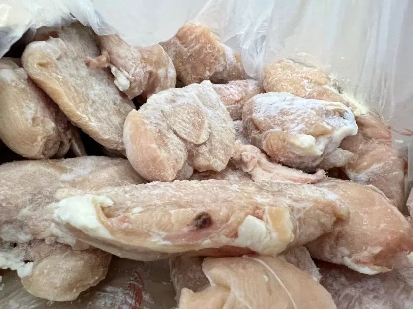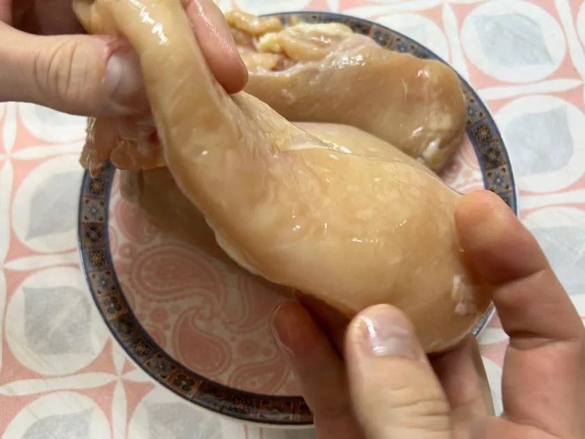 Дома началась самая интересная часть. Когда мясо разморозилось, выяснилось первое: никакого маринада там и близко нет. Ни запаха, ни специй, ни следов соуса — обычные цельные куски мяса. Второе открытие было ещё смешнее: это точно не «филе бедра». Куски слишком большие. Я, конечно, видел куриц разных размеров, но бедро такого масштаба — это уже почти индейка. По виду и структуре это была самая обычная куриная грудка. То есть на коробке одно, внутри другое. И вот это уже неприятный момент: не потому что грудка плохая, а потому что покупателю зачем-то морочат голову.