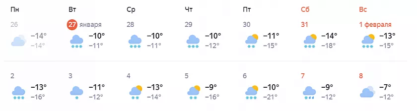 По данным Гидрометцентра России и сервиса "Яндекс.Погода", последние дни января в Нижнем Новгороде пройдут под знаком зимней непогоды. С 28 по 30 января регион останется во власти активного циклона, который принесет череду снегопадов, метелей и усиление ветра до 12–15 м/с. На дорогах ожидаются снежные заносы и ухудшение видимости — в отдельные периоды до 500 метров. Днем температура будет держаться в пределах –10 °C.