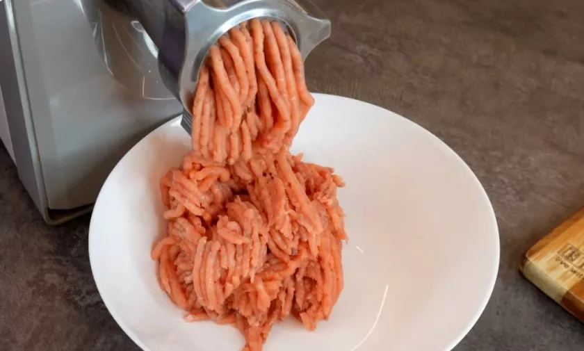 Сначала подготовьте рыбу. Берите тушку, которая ещё не до конца разморозилась: так легче снять филе острым ножом и аккуратно отделить его от костей и кожи. Примерный ориентир — 600 граммов чистого филе. Пропустите рыбу через мясорубку или измельчите в блендере — важна однородная, но не «пастообразная» консистенция. Мелкие косточки при хорошем прокручивании тоже уйдут и не будут чувствоваться.