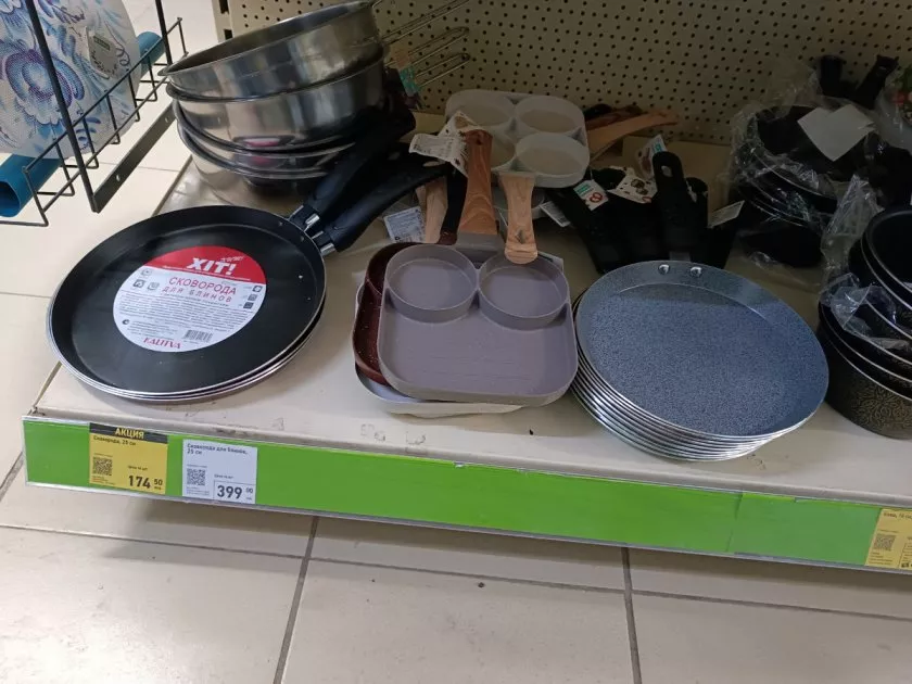 К Масленице особенно актуальны новые блинные сковородки: плоские, с низким бортом, в двух цветах, из той же линейки, что и миски. К ним логично брать скалки и те самые миски для теста — получается готовый комплект «под блины». Сейчас на полках ещё есть выбор по цветам и размерам, а ближе к праздничной неделе самые удачные позиции могут быстро разойтись.