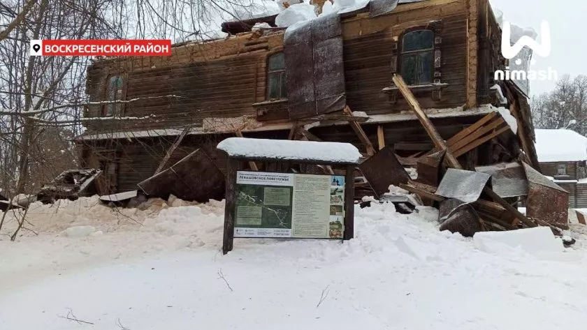 Не устояла и исторические здания: крыша старинной усадьбы Левашовых в Воскресенском округе рухнула, оставив после себя груду досок и штукатурки. А в Арзамасе сложился пополам козырек общежития - зиме, похоже, все равно, сколько лет постройке и кто под ней ходит.