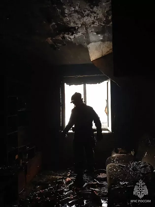 Огонь повредил внутреннюю отделку комнаты. Сгорела часть мебели и другие вещи на площади около 20 квадратных метров. Для тушения пожара привлекли 27 сотрудников пожарной службы и 7 единиц спецтехники.