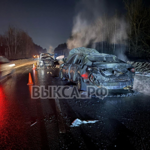 Две легковушки сгорели на трассе под Выксой из-за удара