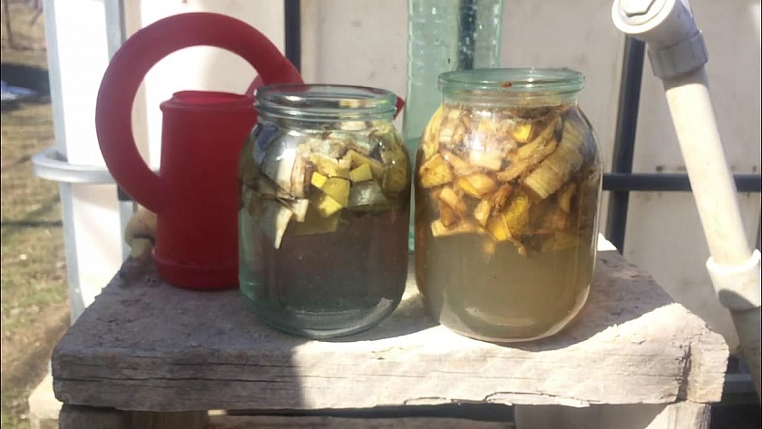 Когда с этими тремя факторами разобрались, можно переходить к подкормке. В роли удобрения выступают банановая и мандариновая кожура — то, что обычно без лишних размышлений отправляется в мусор. Кожуру одного банана и одного мандарина нарезают небольшими кусочками, заливают литром воды комнатной температуры и настаивают двое-трое суток. За это время вода вытягивает из кожуры всё ценное. Готовый настой процеживают и разводят водой в пропорции один к двум — и подкормка готова.