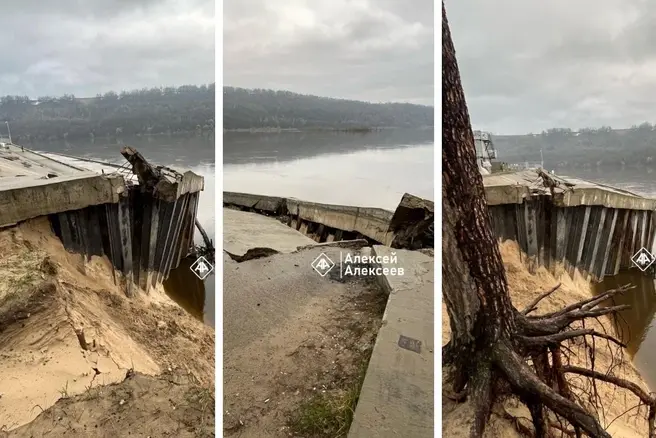 Набережная Оки в Дзержинске снова обвалилась — ремонт 2021 года не выдержал