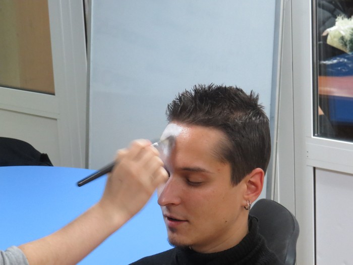 "Для закрепления и уплотнения нанесенного грима можно использовать самую обычную или прозрачную пудру. Естественно, если мы делаем какую-то цветную композицию, то лучше подойдет прозрачная"