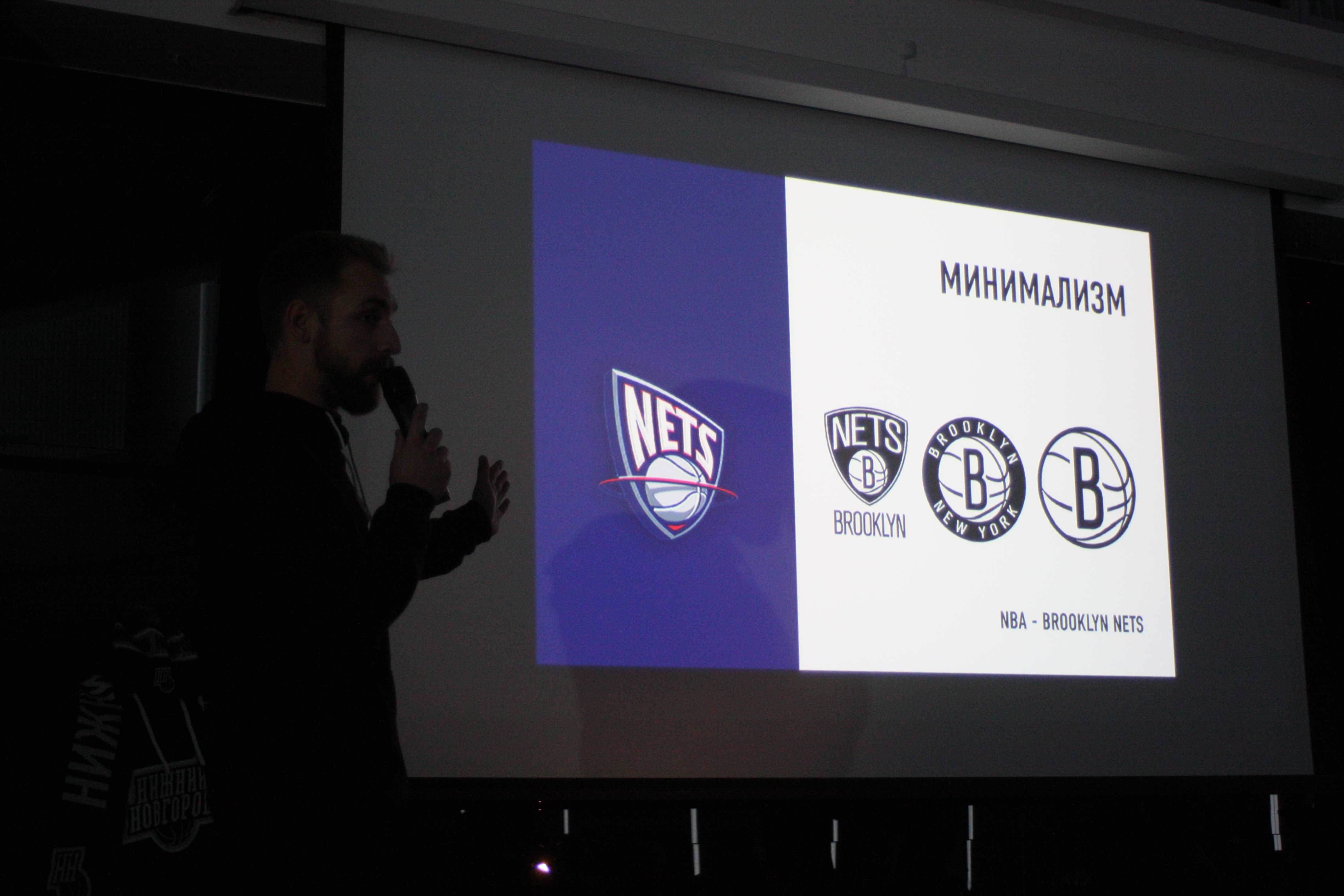 После министра спорта об изменениях в стиле команды рассказал дизайнер клуба Егор Кузнецов. Он презентовал новые логотипы "Нижнего Новгорода", перед этим рассказав о тенденциях в этом вопросе в лучших баскетбольных клубах мира: