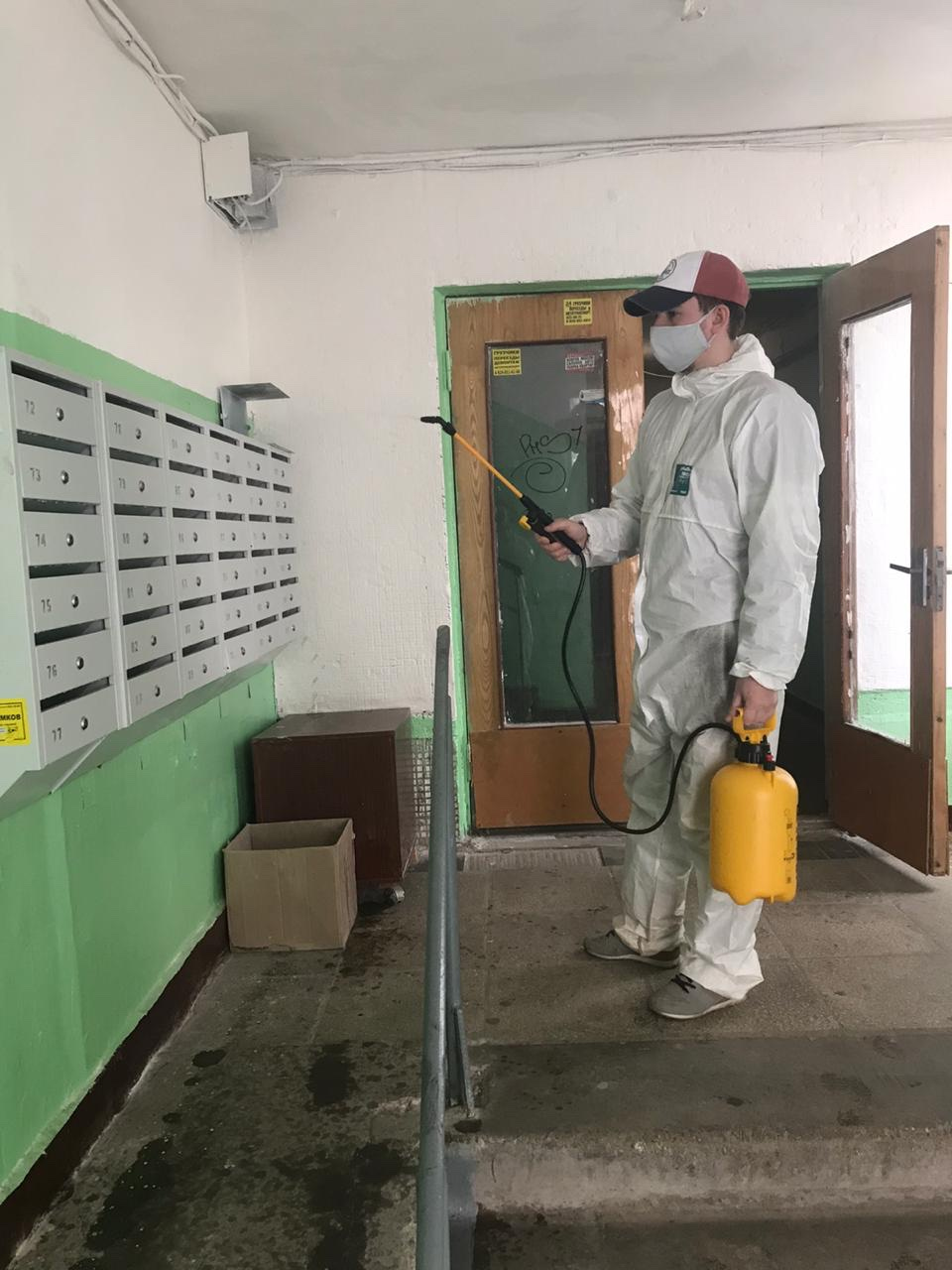 Специалисты обслуживающих организаций домоуправляющих компаний производят дезинфекцию мест общего пользования в многоквартирных домах. Самой тщательной обработке подвергаются дверные ручки, поручни перил, выключатели, почтовые ящики, кнопки лифта и домофона, а также другие поверхности, с которыми могут контактировать жители домов.