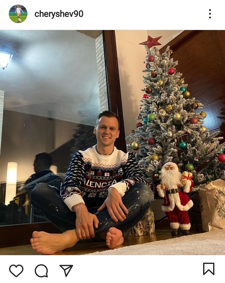 Футболист Денис Черышев поставил у себя елку с большой красной звездой на верхушке.