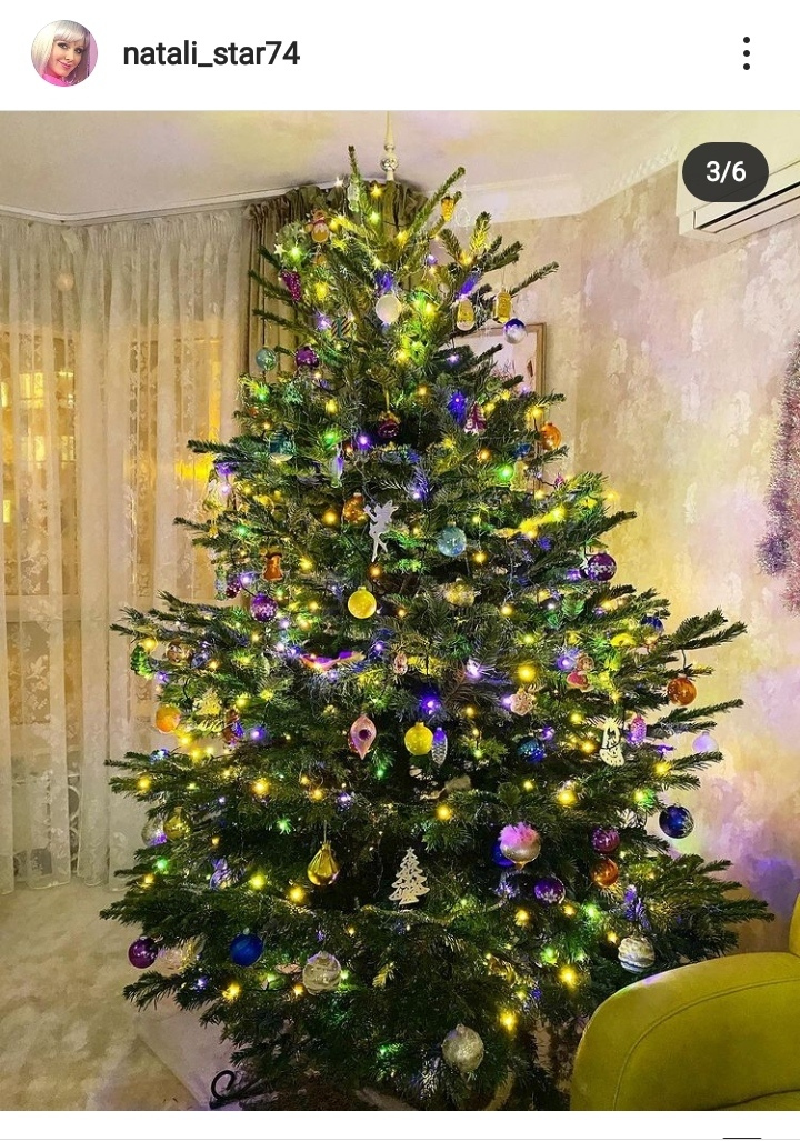 «Анатолий (10 лет) считает, что в ёлке - главное, аромат! Лампочки, ладно, говорит, неизбежно, а игрушки - по настроению. Арсений (19 лет) считает, что лампочек на ёлке достаточно, игрушки - лишнее? Женя (3,5 года) сказал, да нормальная у нас ёлка! В общем, нарядили! Ждём Нового года!», - написала под фото Натали.