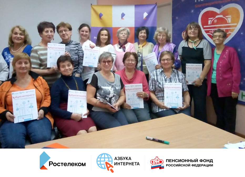 - региональные филиалы «Ростелекома» в Архангельске, Волгограде, Нижнем Новгороде и других городах РФ активно поддерживали всех желающих организовать обучение пенсионеров по программе «Азбука интернета», передавая тиражи учебников в библиотеки, НКО, учреждения социальной защиты;