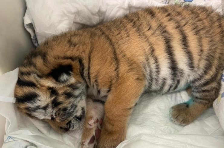 В нижегородском зоопарке "Мадагаскар" выкармливают новорожденного тигренка, от которого отказалась мать.