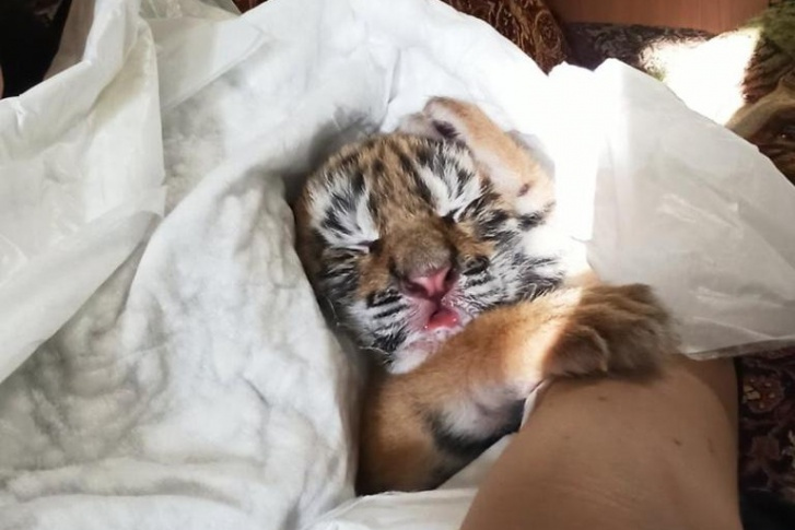 Взрослая тигрица родила малыша восьмого марта. Сотрудники зоопарка следили за появлением тигренка на свет, обеспечили его матери подходящие условия, но она все равно отказалась от потомства. Теперь крошечный хищник спит на грелке и ест из бутылочки. Совсем скоро он должен открыть глазки.