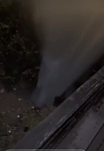 Сильный фонтан горячей воды забил из-под земли в сквере на Звездинке