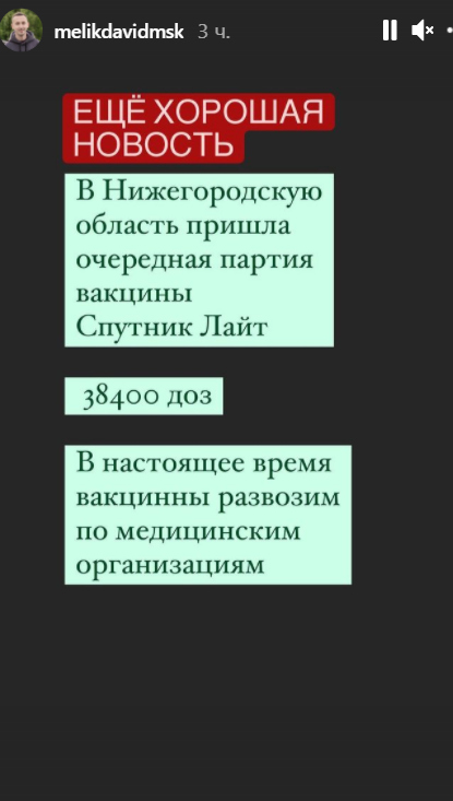 Еще более 38 000 доз вакцины «Спутник Лайт» привезли в Нижегородскую область. Заместитель губернатора Давид Мелик-Гусейнов в своем Инстаграм-аккаунте отметил, что сейчас препарат доставляют в прививочные пункты.