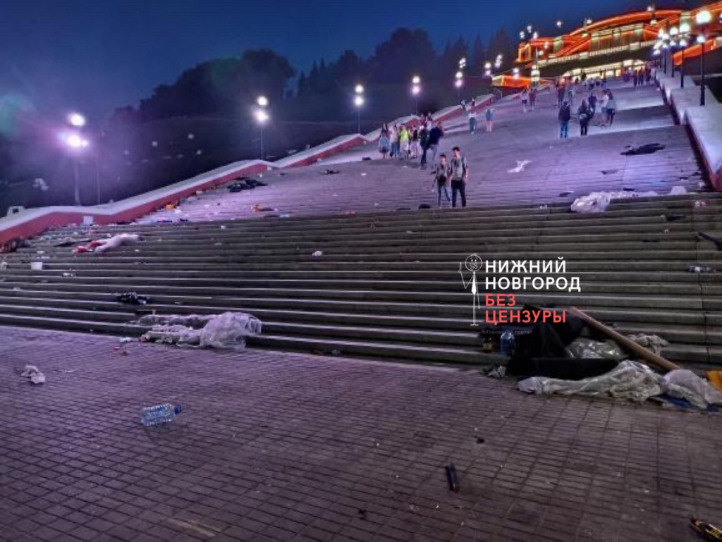 Торжественное открытие Чкаловской лестницы прошло 1 августа. На празднике выступил Симфонический оркестр Мариинского театра и все это сопровождалось аудиовизуальным шоу. Однако после в Сети начали появляться фото и видео последствий праздника. Нижегородцы возмущены тем, что на Чкаловской лестницы огромное количество мусора. Как утверждают пользователи — это не похоже на строительные отходы.