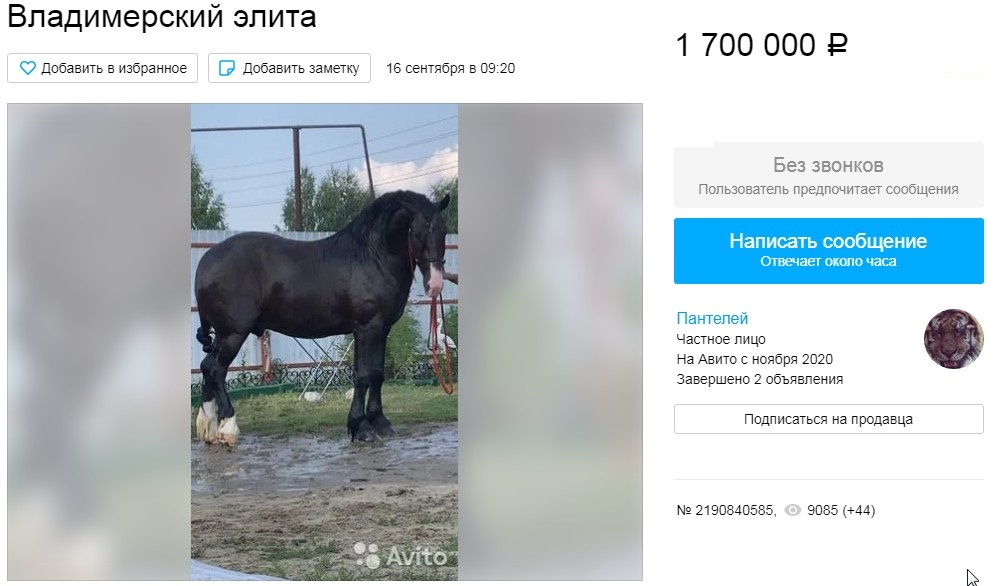 Предприимчивый нижегородец с ником Пантелей разместил на интернет-сервисе объявлений “Авито” своего коня.
