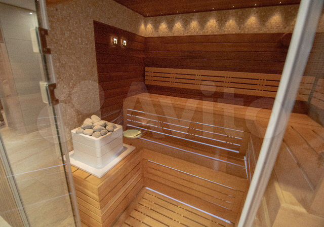 В отдельном здании спа-комплекса оборудован хамам, русская баня, гостиная для отдыха, зона барбекю и даже помещение для хранения вина.